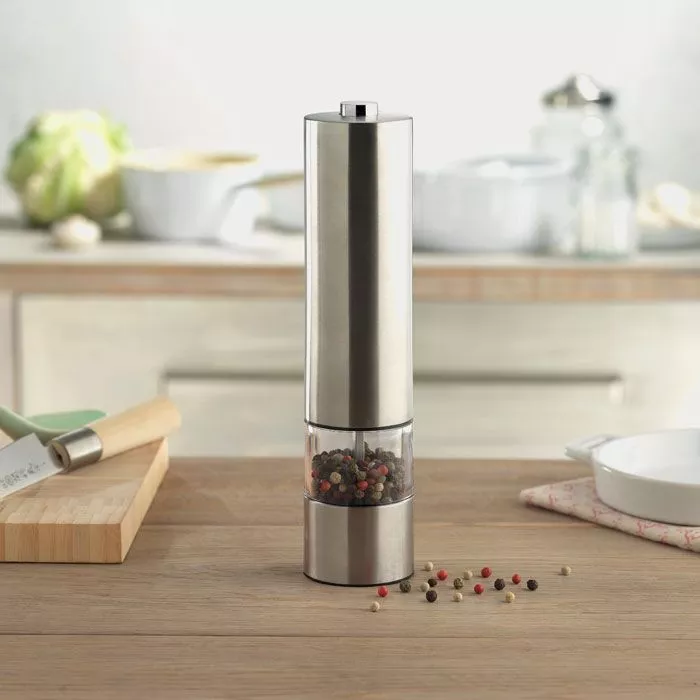 Электрическая мельница для соли и перца из нержавеющей стали.