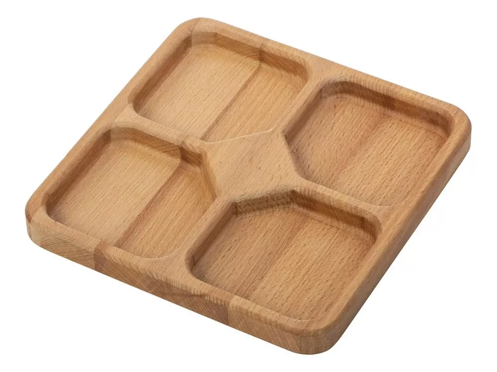Квадратная менажница из натурального бука идеально подходит для подачи закусок, орехов, сыра, оливок и других снеков, подаваемых в масле либо сухими. Четыре вместительные секции позволяют подать различные виды закусок без смешивания, чтобы вы могли насладиться вкусом и красивой подачей каждого из них. Бук не царапает столешницу, в том числе и стеклянную, мягко приземляясь на стол, и красиво обрамляет поданные закуски. Менажница уже обработана минеральным пищевым маслом, которое придает изделию свежий вид. - 4 вместительные секции - натуральный материал, хранящий тепло природы - не царапает столешницу - для раздельной подачи разных видов закусок, сыров и снеков Натуральный бук, из которого выполнена менажница, как и любое дерево, требует ухода, который существенно продлит ему жизнь и позволит радовать своего обладателя в течение многих лет. Пропитывание пищевым маслом (растительное, льняное и т.д.) раз в один-два месяца поможет менажнице сохранять свежий вид. Рекомендации по использованию: - не рекомендуется использовать в посудомоечной машине, микроволновой печи, замачивать в раковине с водой; - не использовать агрессивные моющие средства; - использовать мягкую губку для очищения; - вытирать насухо после мытья. Гравировка (CO2 лазер) (Без чернения) на данный товар осуществляется бесплатно. Оплачивается только настройка оборудования в размере 950 рублей на весь тираж.