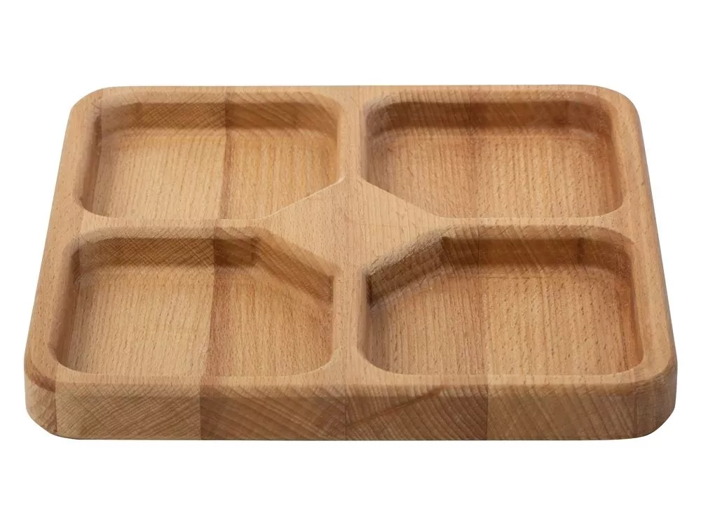 Квадратная менажница из натурального бука идеально подходит для подачи закусок, орехов, сыра, оливок и других снеков, подаваемых в масле либо сухими. Четыре вместительные секции позволяют подать различные виды закусок без смешивания, чтобы вы могли насладиться вкусом и красивой подачей каждого из них. Бук не царапает столешницу, в том числе и стеклянную, мягко приземляясь на стол, и красиво обрамляет поданные закуски. Менажница уже обработана минеральным пищевым маслом, которое придает изделию свежий вид. - 4 вместительные секции - натуральный материал, хранящий тепло природы - не царапает столешницу - для раздельной подачи разных видов закусок, сыров и снеков Натуральный бук, из которого выполнена менажница, как и любое дерево, требует ухода, который существенно продлит ему жизнь и позволит радовать своего обладателя в течение многих лет. Пропитывание пищевым маслом (растительное, льняное и т.д.) раз в один-два месяца поможет менажнице сохранять свежий вид. Рекомендации по использованию: - не рекомендуется использовать в посудомоечной машине, микроволновой печи, замачивать в раковине с водой; - не использовать агрессивные моющие средства; - использовать мягкую губку для очищения; - вытирать насухо после мытья. Гравировка (CO2 лазер) (Без чернения) на данный товар осуществляется бесплатно. Оплачивается только настройка оборудования в размере 1000 рублей на весь тираж.
