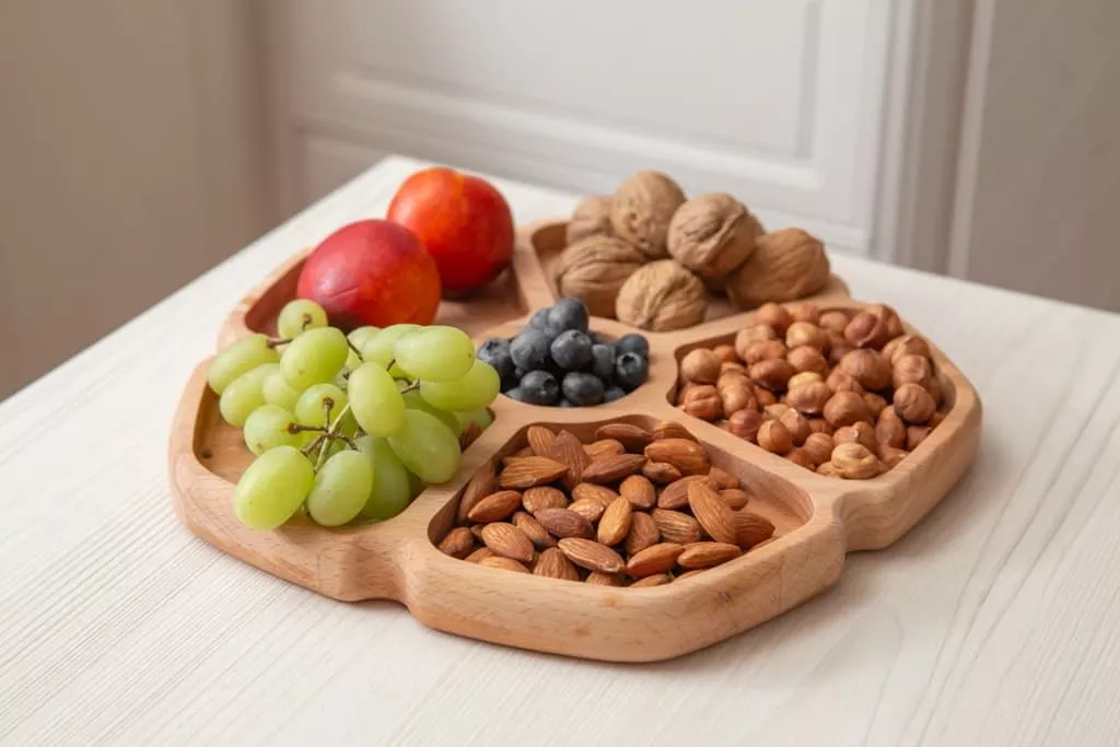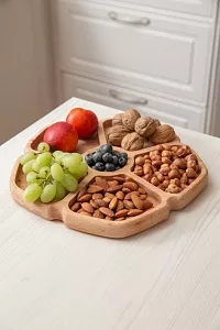 Менажница в форме цветка на 5 ячеек D=23см, выполнен из премиум материала бук. Материал отличается следующими преимуществами: Прочность - премиум материал дерева Бук Безопасность - обладает противомикробными свойствами, не вызывает аллергических реакций Простой в уходе - моется теплой водой, допускается использование средств для мытья посуды Экологичность - натуральное и безопасное сырьеУдобство - устойчив на любых плоских поверхностях, включая диваны и кровати