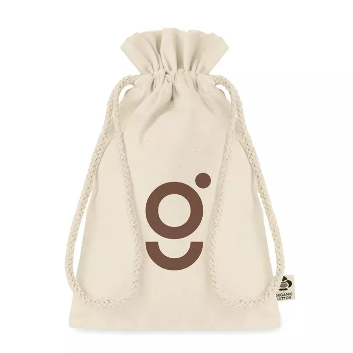 Небольшой подарочный мешок из органического хлопка. Размер около 14x22 см. 105 гр/м².