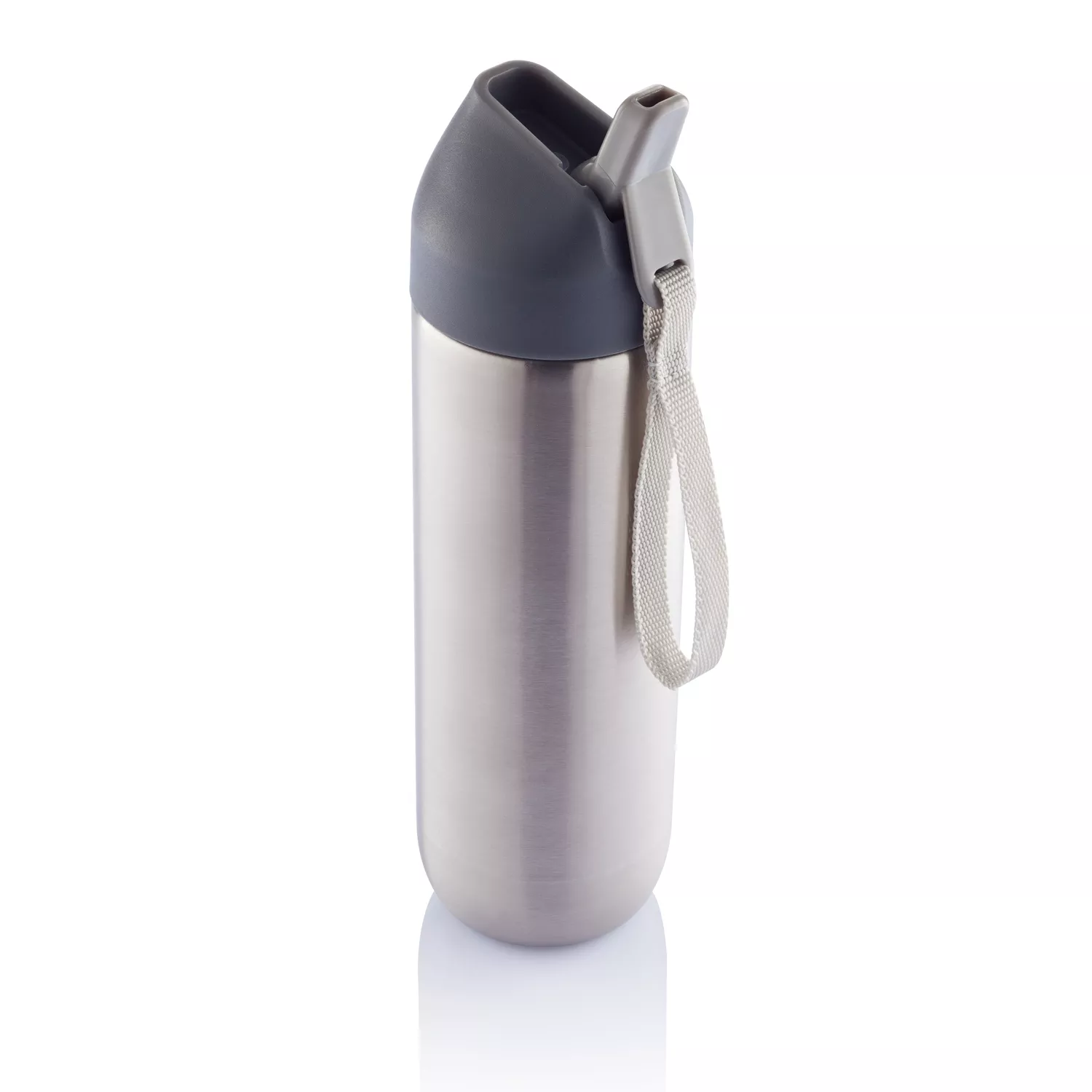 Металлическая бутылка для воды Neva - это новый шаг в борьбе с одноразовыми пластиковыми бутылками, ведь ее преимущества перед ними слишком очевидны. Бутылка объемом 500 мл изготовлена из 304 нержавеющей стали. Продуманный тканевый ремешок сочетает в себе сразу две функции: с ним вы с удобством можете брать бутылку с собой, куда бы вы ни пошли, а также он позволяет открыть бутылку и получить доступ к трубочке за считанные секунды. Зарегистрированный дизайн®.