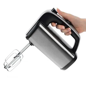 В комплект входят венчики для взбивания крема, мусса, суфле, яичных белков и коктейлей, а также крюкообразные насадки, предназначенные для замешивания теста для бисквита, блинов и панкейков.