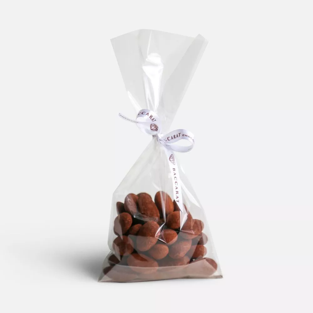 Цельный миндаль в хрустящей оболочке из темного бельгийского шоколада, дополненной бархатной обсыпкой из горького какао. Интенсивный шоколадный вкус с нотами горечи и насыщенная ореховая сердцевина — элегантное лакомство для ценителей.