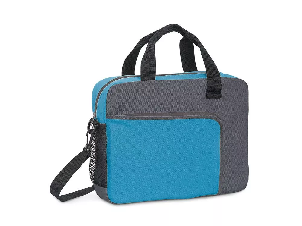 Многофункциональная сумка 600D с 2 боковыми сетчатыми карманами и передним карманом. В удлинение одной из ручек входят 2 ручки для ручек (не входят в комплект). Папка имеет регулируемый плечевой ремень из тесьмы. 390 x 300 x 80 мм. Вид нанесения, рекомендуемый поставщиком: трансфер.
