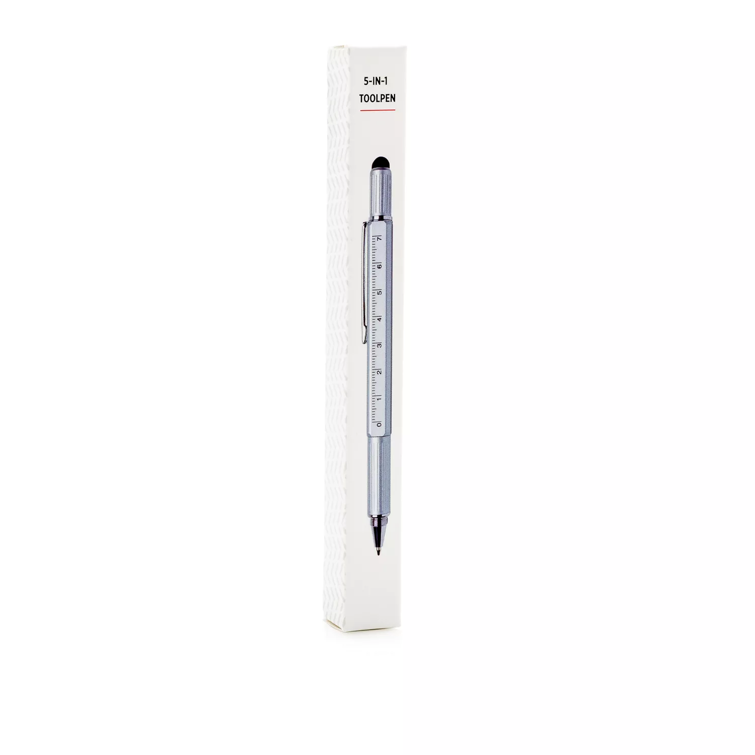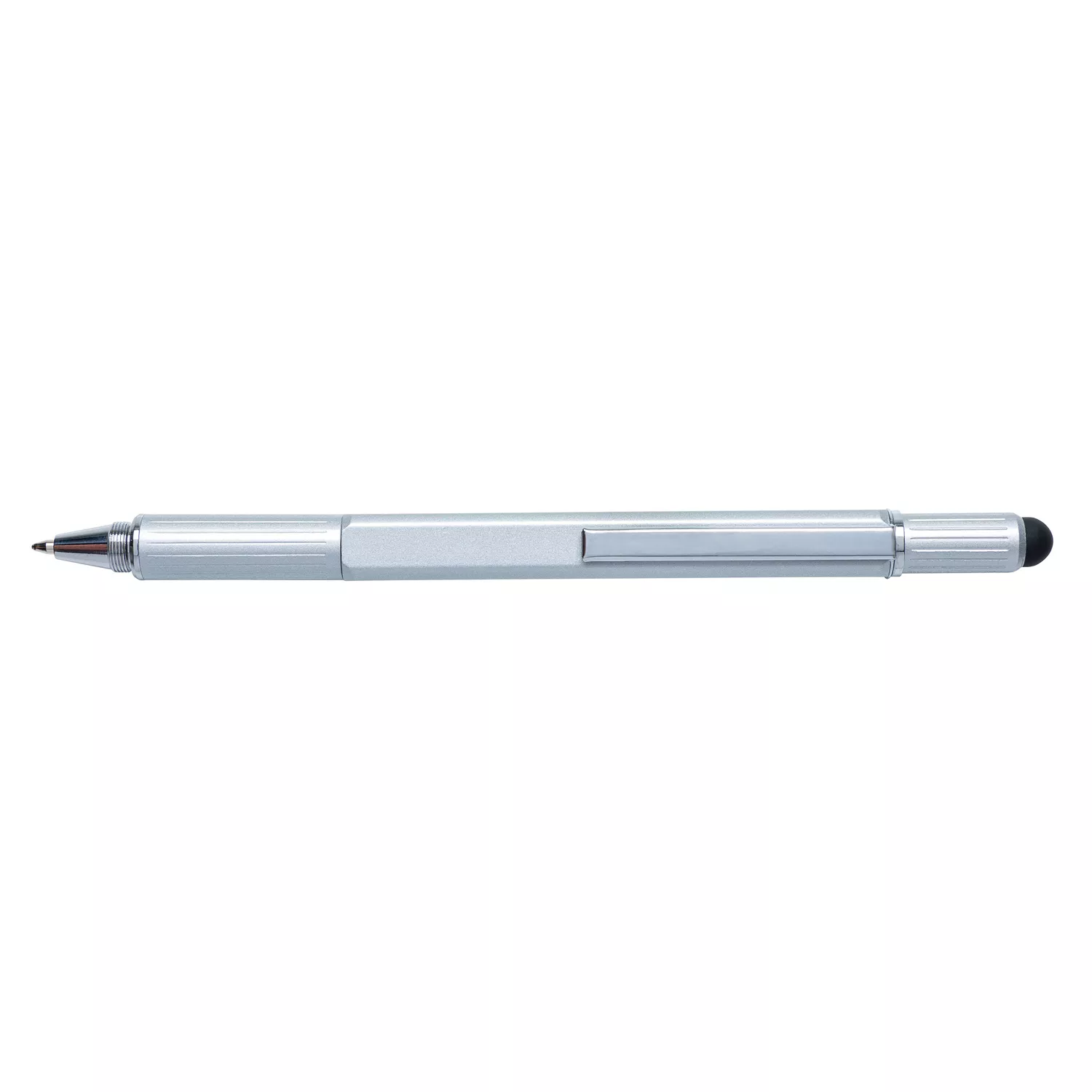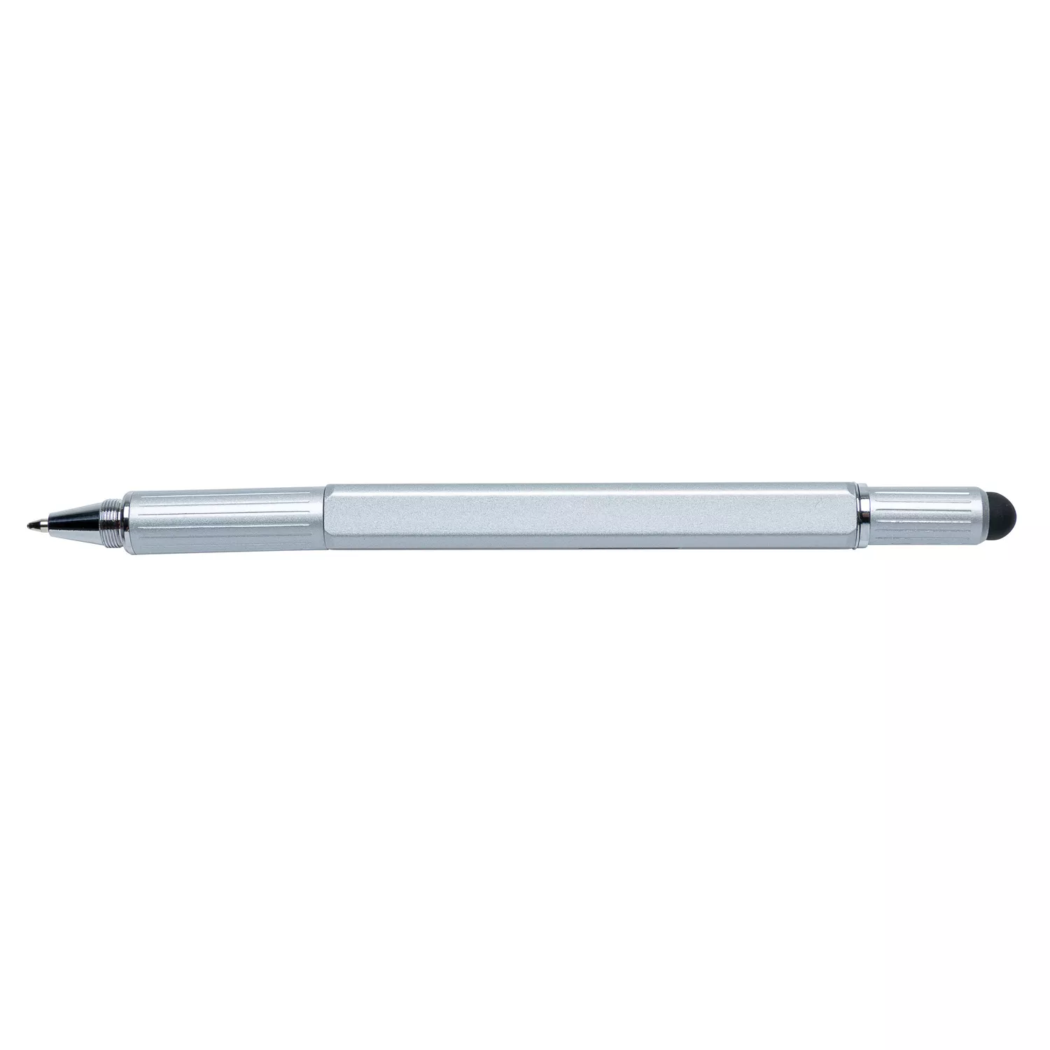 Многофункциональная ручка совмещает в себе линейку длиной 7см, спиртовой уровень, отвертку, стилус и синюю шариковую ручку, чернил в стержне которой хватит на линию длиной до 400м. Корпус ручки изготовлен из высококачественной латуни и дополнен удобным алюминиевым клипом.