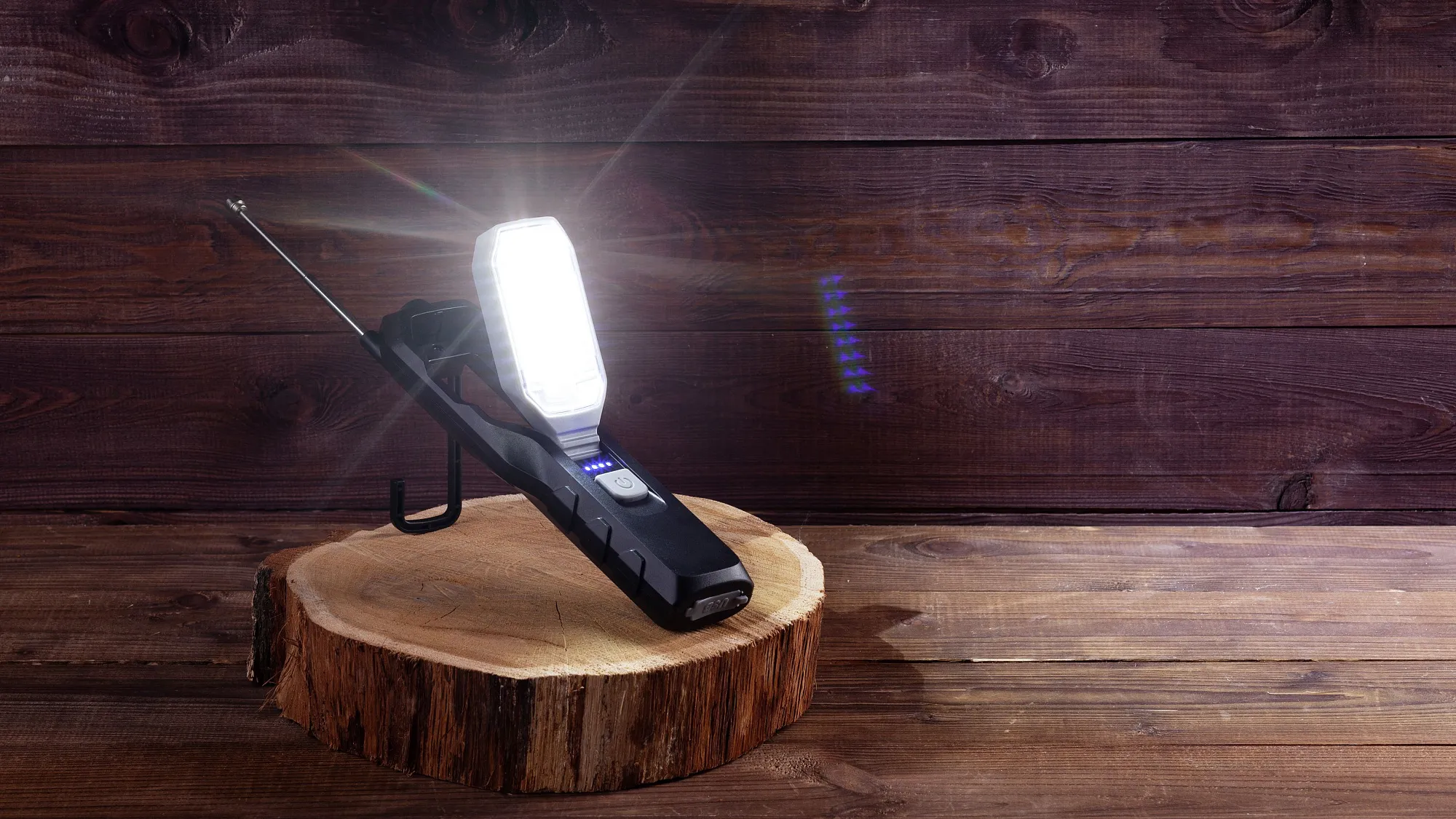 - дополнительный COB-прожектор (яркость 280 люмен) с регулировкой направления светового потока, 3 режима (яркий белый, приглушенный белый, сигнальный маячок красный)