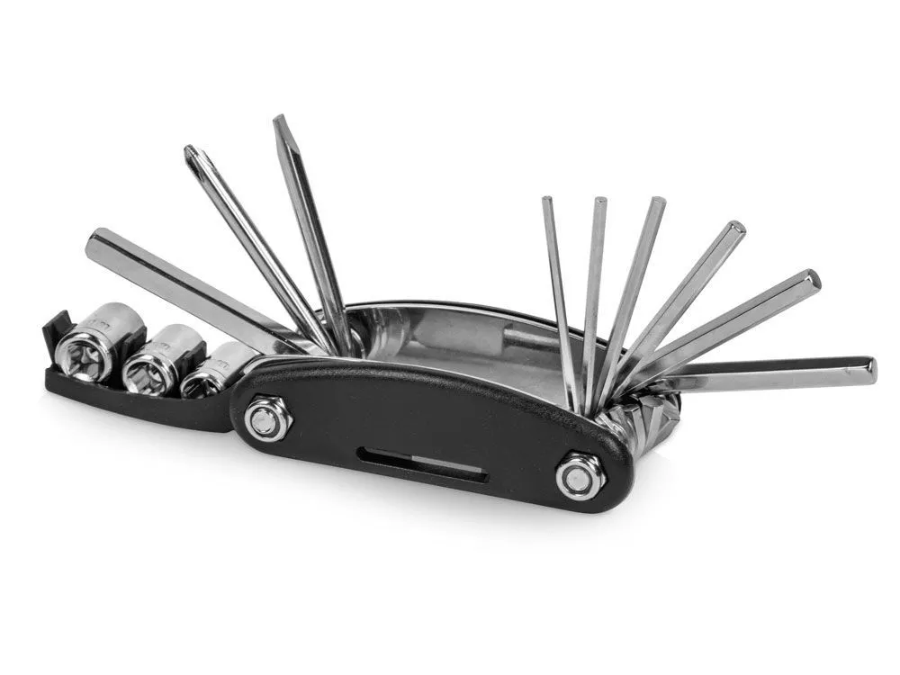 16-функциональный инструмент с покрытием из высококачественной резины включает 6 шестигранных ключей (№ 2, № 2,5, № 3, № 4, № 5, № 6), 4 ключа (8 мм, 10 мм, 15 мм, 14GE), адаптер, крестообразную отвертку, шлицевую отвертку и 3 насадки (№ 8, № 9, № 10). Эксклюзивный дизайн. Нержавеющая сталь и АБС. Тампопечать (1 цвет (цветные изделия)) на данный товар осуществляется бесплатно. Оплачивается только настройка оборудования в размере 3600 рублей на весь тираж.