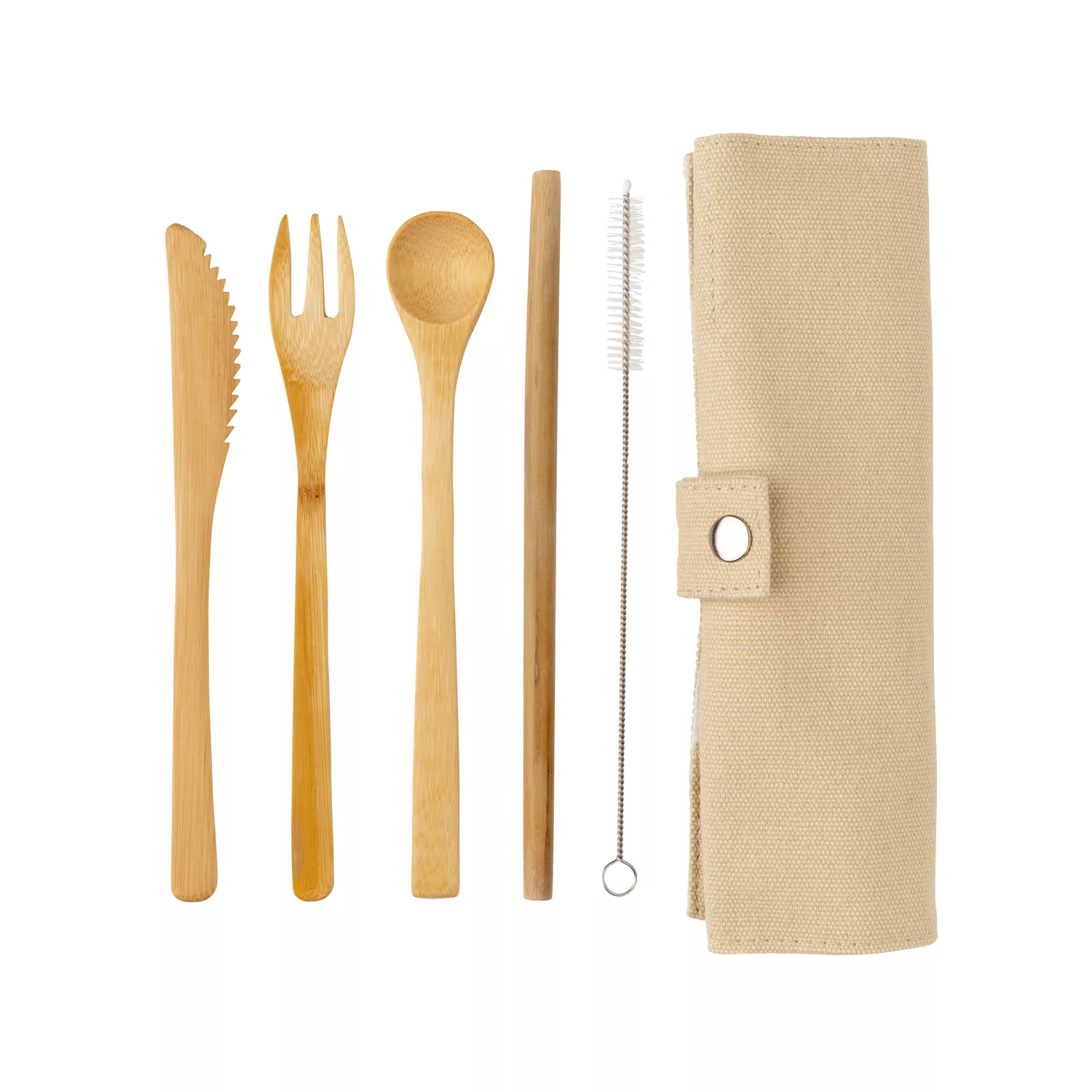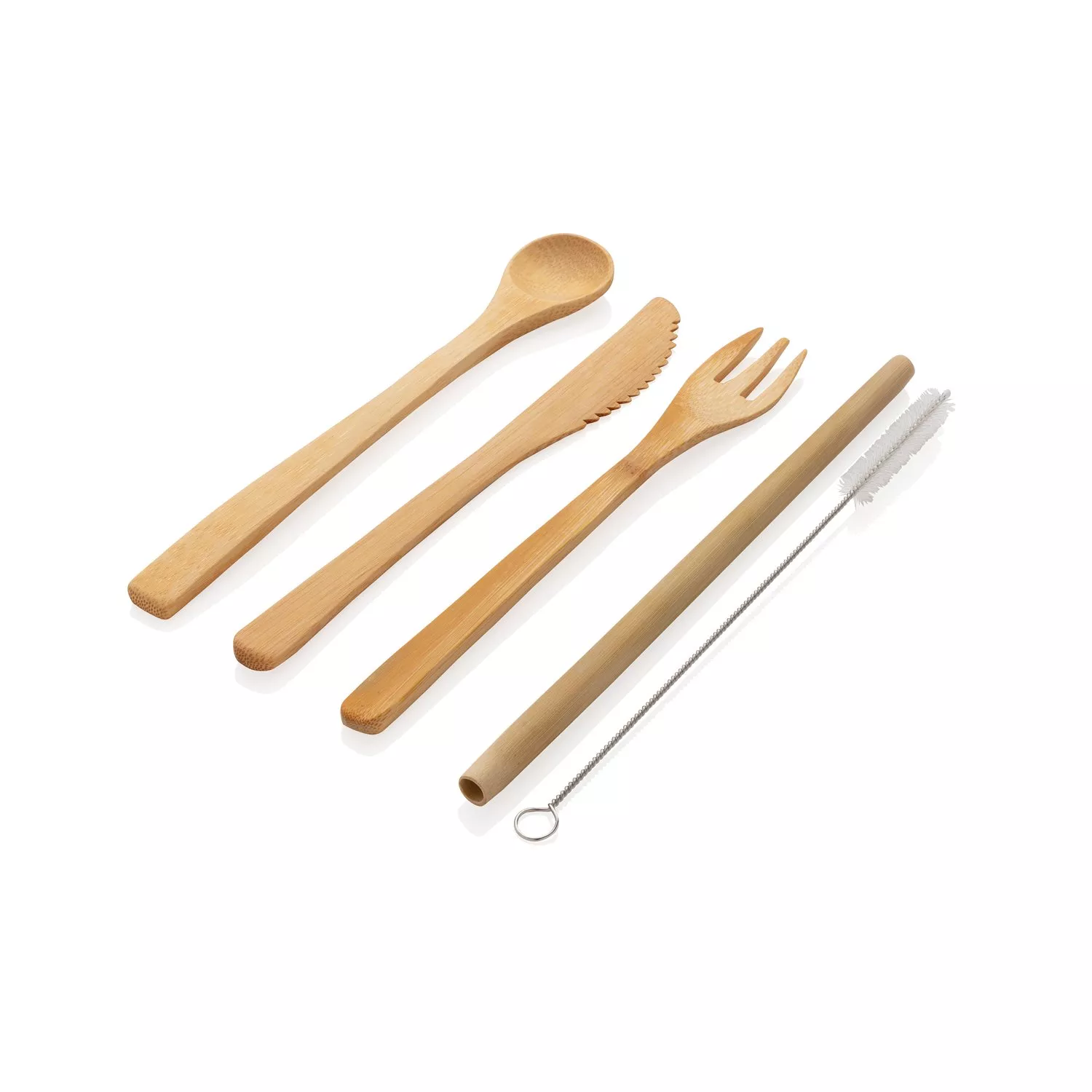 Быть экологичным стало еще проще, теперь, куда бы вы ни пошли, вы можете брать свой многоразовый набор столовых приборов из бамбука! Используя набор, вы сокращаете потребление вредного пластика и делаете планету чище! Столовые приборы изготовлены из биоразлагаемого материала, поэтому они не будут загрязнять окружающую среду. В набор входят ложка, вилка, нож, трубочка, ершик и удобный холщовый чехол.