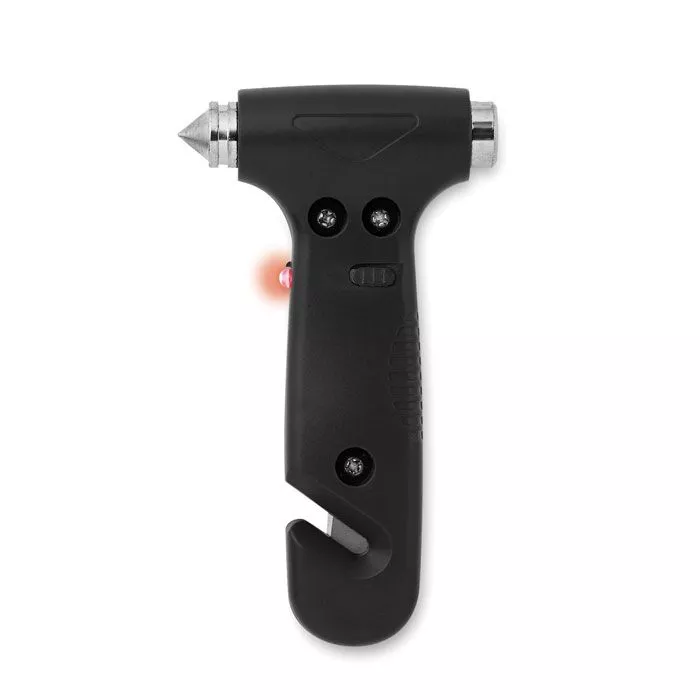Аварийный молоток с ножом для срезания строп и фонариком.