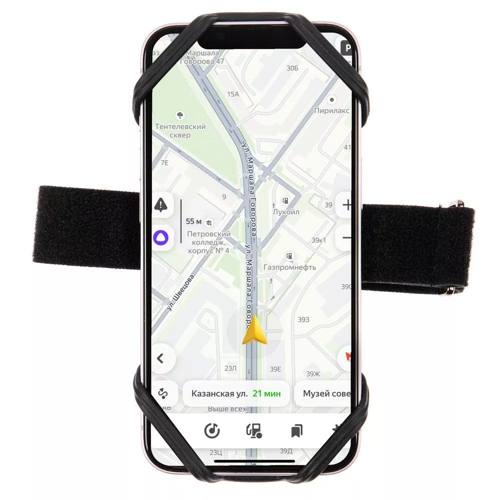 С помощью короткого ремешка на липучке телефон можно закрепить на руль автомобиля или велосипеда, спортивный тренажер, предплечье, бутылку для воды и даже ручку детской коляски. Длинный ремень предназначен для закрепления телефона на поясе во время бега или прогулки. Также на нем можно разместить мини-сумку для хранения мелочей и таким образом использовать комплект в качестве поясной сумки и держателя для телефона одновременно.