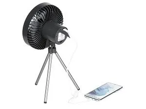 Многофункциональный вентилятор Jon имеет 3 режима обдува и подсветки: слабый, средний и интенсивный. Таймер позволяет запланировать отключение вентилятора с отсрочкой от 1 до 5 часов. Световой индикатор отображает процесс зарядки вентилятора, позволяющий определить, когда устройство полностью заряжено или скоро разрядится (время зарядки 3-4 часа). Вентилятор оснащён съёмной решёткой, что позволяет легко очистить его от пыли и загрязнений. Ручка, расположенная на корпусе, поможет удобно перенести вентилятор при необходимости. В комплект помимо штатива также входит карабин для подвешивания, что может быть очень полезным, например, в палатке. Ещё одна незаменимая функция для кэмпинга - возможность заряжать от вентилятора другие устройства (как от пауэрбанка), мощность аккумулятора - 3600 мА/ч. - три режима ночника и обдува; - таймер для отложенного отключения; - мощность: 4 Вт; - время зарядки: 3-4 ч; - уровень шума: 50 дБ; - съёмная решётка для удобства ухода за вентилятором; - индикатор заряда; - карабин для подвешивания и ручка для переноса. УФ-печать (УФ-печать цветные изделия) на данный товар осуществляется бесплатно. Оплачивается только настройка оборудования в размере 1800 рублей на весь тираж.