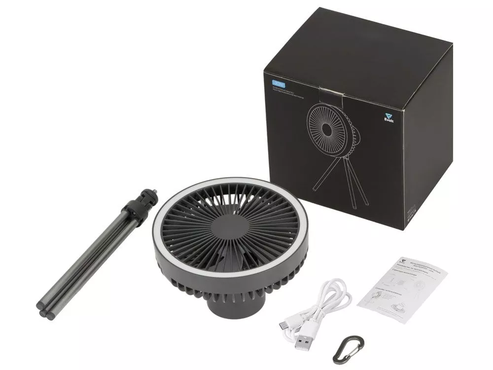 Многофункциональный вентилятор Jon имеет 3 режима обдува и подсветки: слабый, средний и интенсивный. Таймер позволяет запланировать отключение вентилятора с отсрочкой от 1 до 5 часов. Световой индикатор отображает процесс зарядки вентилятора, позволяющий определить, когда устройство полностью заряжено или скоро разрядится (время зарядки 3-4 часа). Вентилятор оснащён съёмной решёткой, что позволяет легко очистить его от пыли и загрязнений. Ручка, расположенная на корпусе, поможет удобно перенести вентилятор при необходимости. В комплект помимо штатива также входит карабин для подвешивания, что может быть очень полезным, например, в палатке. Ещё одна незаменимая функция для кэмпинга - возможность заряжать от вентилятора другие устройства (как от пауэрбанка), мощность аккумулятора - 3600 мА/ч. - три режима ночника и обдува; - таймер для отложенного отключения; - мощность: 4 Вт; - время зарядки: 3-4 ч; - уровень шума: 50 дБ; - съёмная решётка для удобства ухода за вентилятором; - индикатор заряда; - карабин для подвешивания и ручка для переноса. УФ-печать (УФ-печать цветные изделия) на данный товар осуществляется бесплатно. Оплачивается только настройка оборудования в размере 1800 рублей на весь тираж.