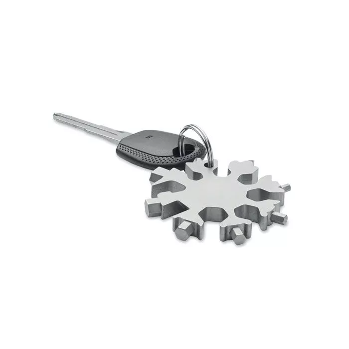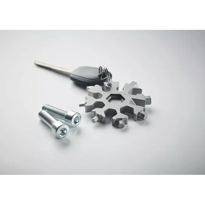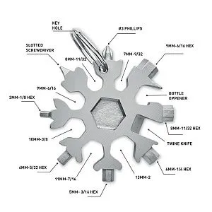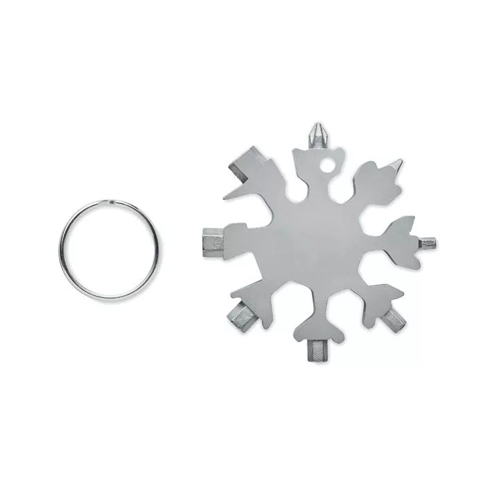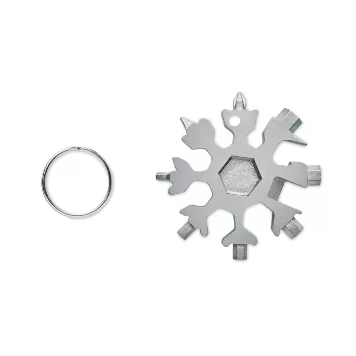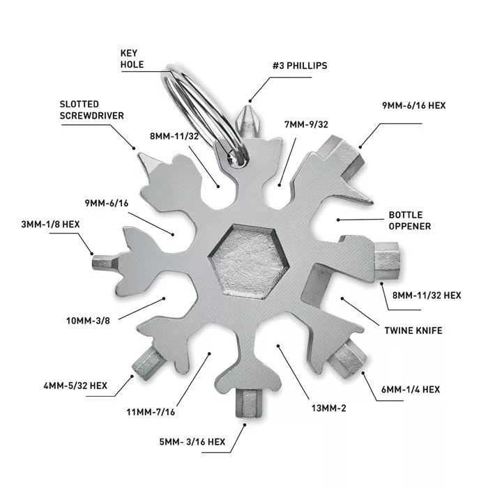 Мультиинструмент 17-в-1 из нержавеющей стали в форме снежинки. Дополнительное металлическое кольцо входит в комплект.