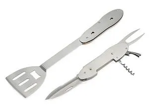 Мультиинструмент для барбекю Blade состоит из 5 предметов: - лопатка - вилка для барбекю - штопор - открывалка для бутылок - нож BBQ мультитул с легкостью разделяется на 2 части. В комплекте индивидуальный брендированный чехол, на котором эффектно будет смотреться тиснение. Поставляется в цветной коробке. Тиснение (Блинт) на данный товар осуществляется бесплатно. Оплачивается только настройка оборудования в размере 3000 рублей на весь тираж.