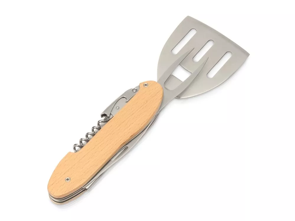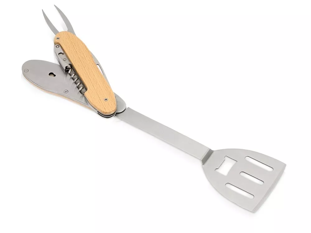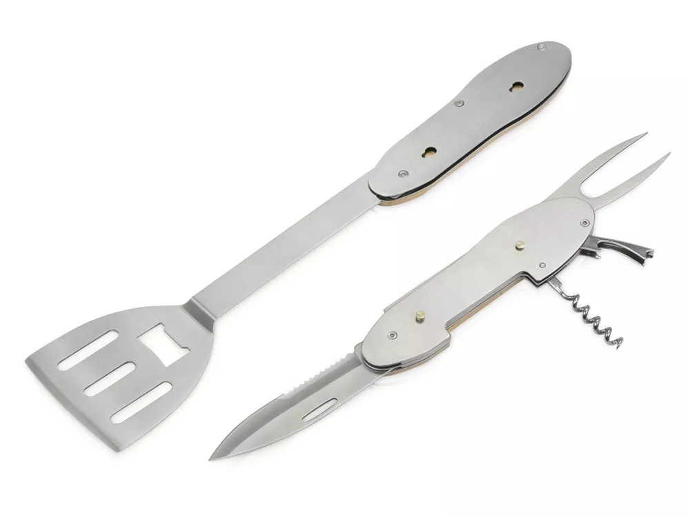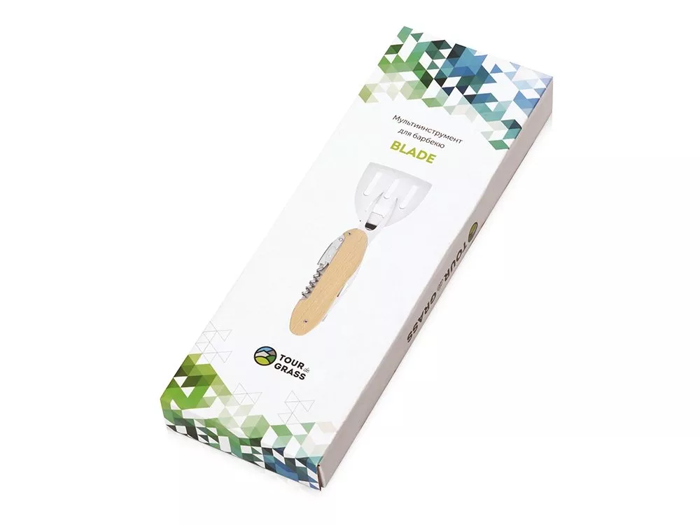 Мультиинструмент для барбекю Blade состоит из 5 предметов: - лопатка - вилка для барбекю - штопор - открывалка для бутылок - нож BBQ мультитул с легкостью разделяется на 2 части. В комплекте индивидуальный брендированный чехол, на котором эффектно будет смотреться тиснение. Поставляется в цветной коробке. Тиснение (Блинт) на данный товар осуществляется бесплатно. Оплачивается только настройка оборудования в размере 3000 рублей на весь тираж.