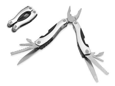 Настоящая находка для всех хозяйственных мужчин. Мультиинструмент всегда будет под рукой, так как его можно носить на поясе. Супер-пассатижи в чехле не так просты, как кажутся на первый взгляд! Они скрывают в себе целый арсенал нужных инструментов! - плоскогубцы - открывалка для бутылок - крестовая отвертка - нож-серрейтор для рыбы - нож универсальный - открывалка для банок - плоская отвертка 2 шт - пила - напильник Гравировка (оптоволоконный лазер) (Без чернения) на данный товар осуществляется бесплатно. Оплачивается только настройка оборудования в размере 1000 рублей на весь тираж.