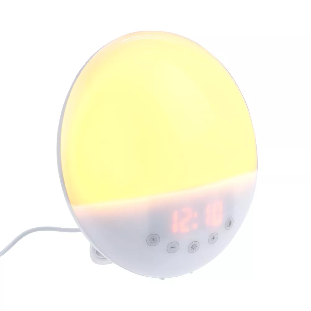 За 30 минут до звонка будильника активируется подсветка и ее яркость постепенно увеличивается — свет медленно выводит организм из фазы глубокого сна и вы будто встаете «с первыми лучами солнца». Эффект мягкого пробуждения можно дополнить натуральными звуками природы.