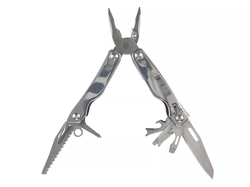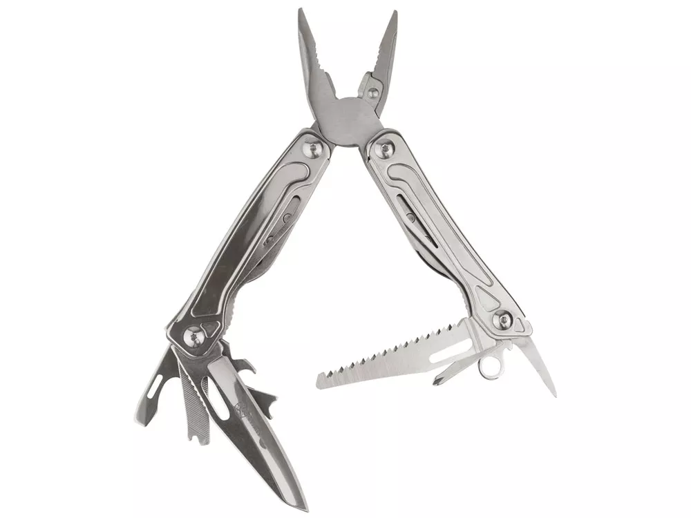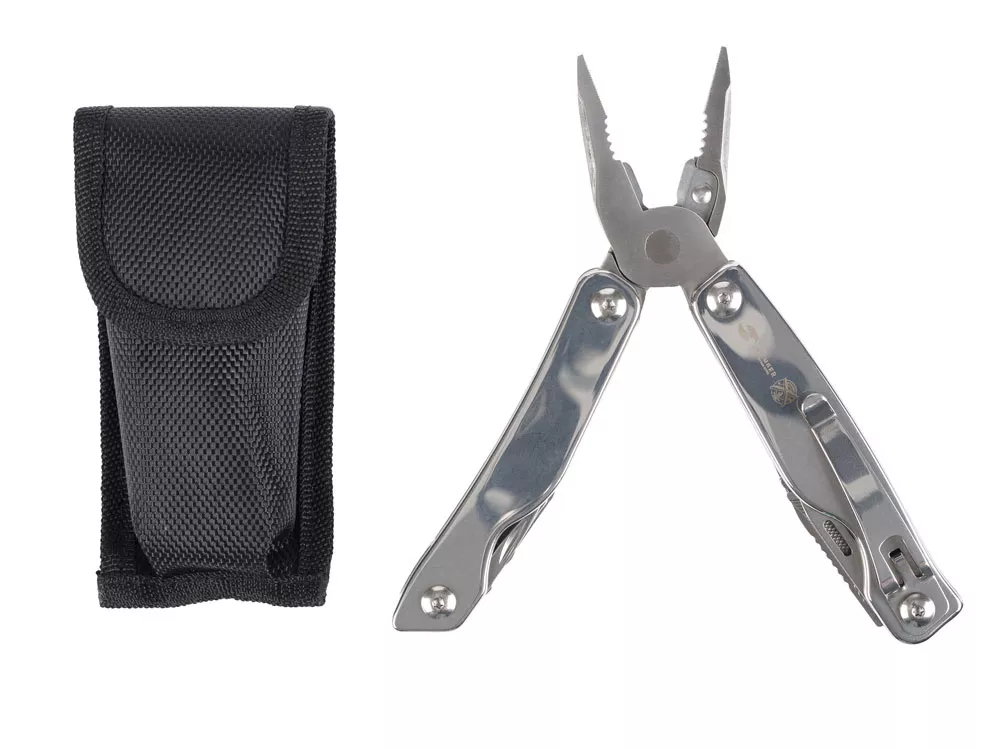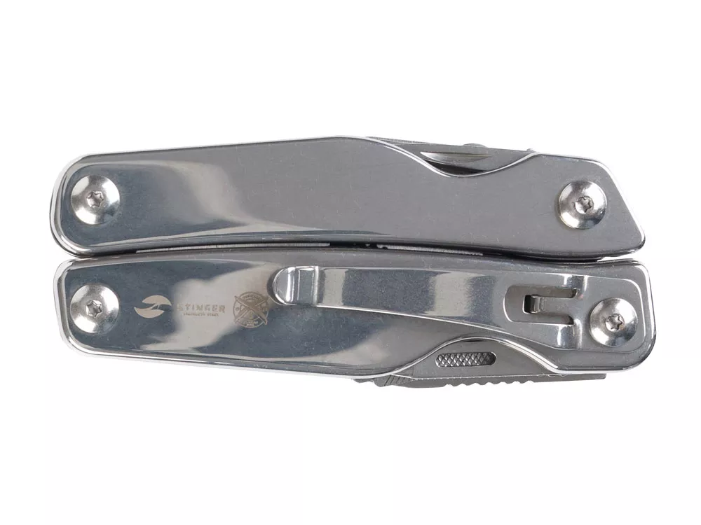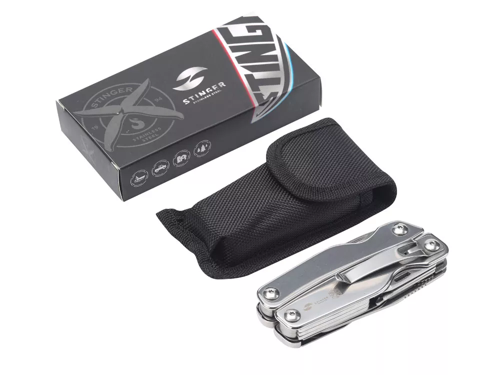 МНОГОФУНКЦИОНАЛЬНЫЙ ИНСТРУМЕНТ STINGER С НАБОРОМ ИЗ 11 ФУНКЦИЙ: 1. Острогубцы 2. Пассатижи 3. Кусачки 4. Кусачки для твёрдой проволоки 5. Лезвие 73 мм 6. Пила по дереву и металлу 7. Отвёртка крестовая 8. Отвёртка шлицевая большая 9. Напильник по дереву и металлу 10. Открывалка для бутылок 11. Шило ХАРАКТЕРИСТИКИ: Материал инструментов: нержавеющая сталь 3Cr13 Материал рукояти: нержавеющая сталь Длина: 101 мм Ширина: 43 мм Вес: 263 г В комплекте: чехол из синтетического материала Упаковка: складная картонная коробка