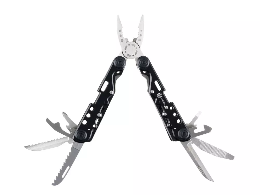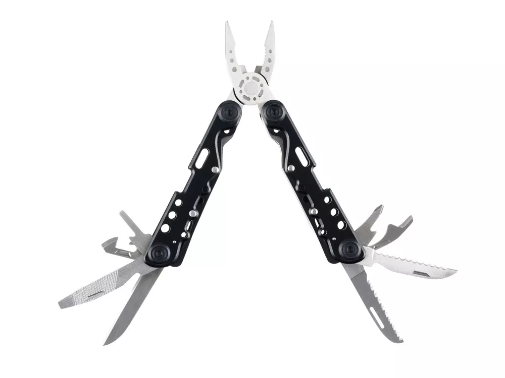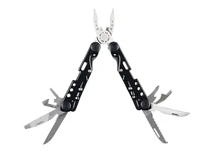 МНОГОФУНКЦИОНАЛЬНЫЙ ИНСТРУМЕНТ STINGER С НАБОРОМ ИЗ 13 ФУНКЦИЙ: 1. Острогубцы 2. Пассатижи 3. Кусачки 4. Лезвие большое плоское 5. Лезвие с серрейторной кромкой 6. Пила по дереву и металлу 7. Напильник по дереву и металлу 8. Отвёртка крестовая 9. Отвёртка шлицевая большая 10. Отвёртка шлицевая малая 11. Инструмент для снятия изоляции 12. Открывалка для бутылок 13. Консервный нож ХАРАКТЕРИСТИКИ: Материал инструментов: нержавеющая сталь 3Cr13 Материал рукояти: нержавеющая сталь Длина: 105 мм Ширина: 40 мм Вес: 230 г В комплекте: чехол из синтетического материала Упаковка: картонная коробка