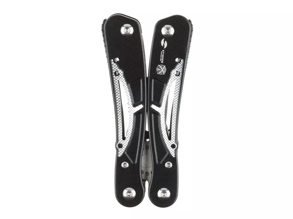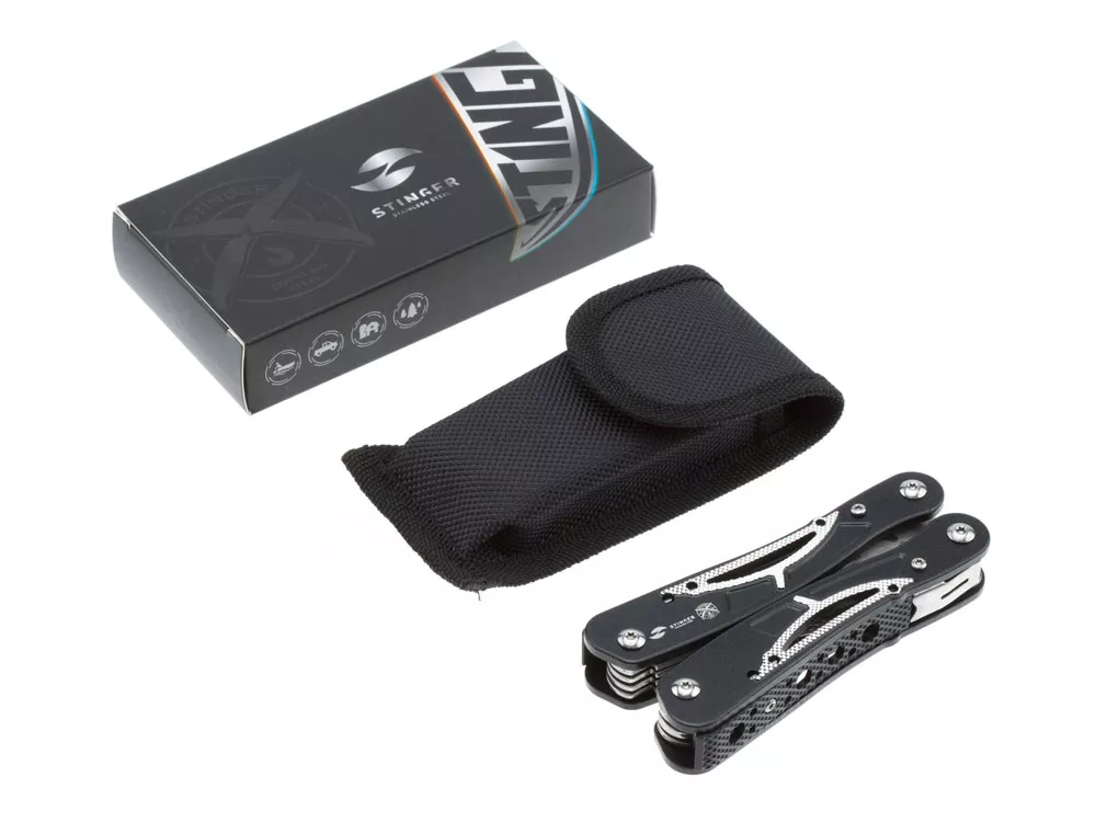 МНОГОФУНКЦИОНАЛЬНЫЙ ИНСТРУМЕНТ STINGER С НАБОРОМ ИЗ 13 ФУНКЦИЙ: 1. Острогубцы 2. Пассатижи 3. Кусачки 4. Лезвие большое 5. Лезвие с серрейторной кромкой 6. Отвёртка крестовая 7. Отвёртка шлицевая большая 8. Отвёртка шлицевая средняя 9. Отвёртка шлицевая малая 10. Открывалка для бутылок 11. Консервный нож 12. Шило 13. Напильник ХАРАКТЕРИСТИКИ: Материал инструментов: нержавеющая сталь 2Cr13 Материал рукояти: алюминий Длина: 104 мм Ширина: 45 мм Вес: 235 г В комплекте: чехол из синтетического материала Упаковка: складная картонная коробка