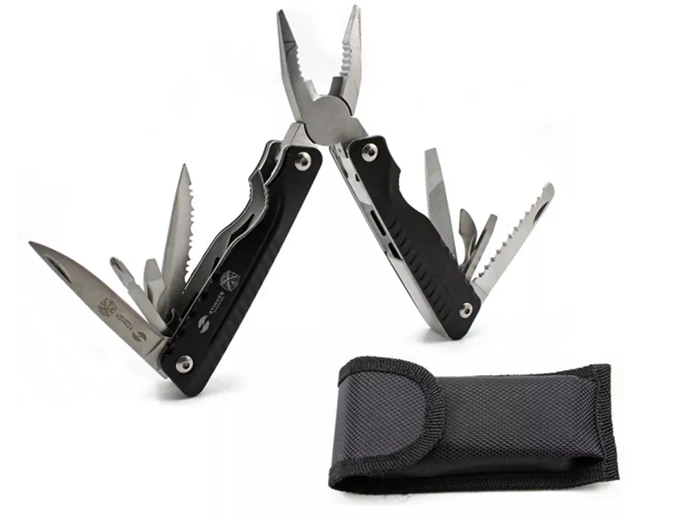 МНОГОФУНКЦИОНАЛЬНЫЙ ИНСТРУМЕНТ STINGER С НАБОРОМ ИЗ 9 ФУНКЦИЙ: 1. Плоскогубцы 2. Лезвие большое плоское 3. Пила по дереву и металлу 4. Напильник по дереву и металлу 5. Отвёртка крестовая 6. Отвёртка шлицевая большая 7. Отвёртка шлицевая малая 8. Открывалка для бутылок 9. Консервный нож ХАРАКТЕРИСТИКИ: Материал инструментов: нержавеющая сталь 3Cr13 Материал рукояти: нержавеющая сталь, пластик Длина: 104 мм Ширина: 43 мм Вес: 274 г В комплекте: чехол из синтетического материала Упаковка: складная картонная коробка