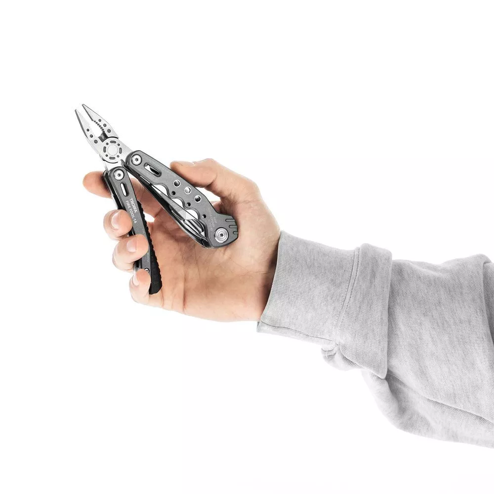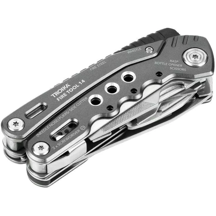 Вы можете положиться на мультитул Fire Tool 14 на все 100%! В нем есть все, что может понадобиться в походе: от сигнального свистка до ножа из высококачественной стали. Благодаря эргономичной конструкции инструмент подходит как для правши, так и для левши.14 фунцкий: