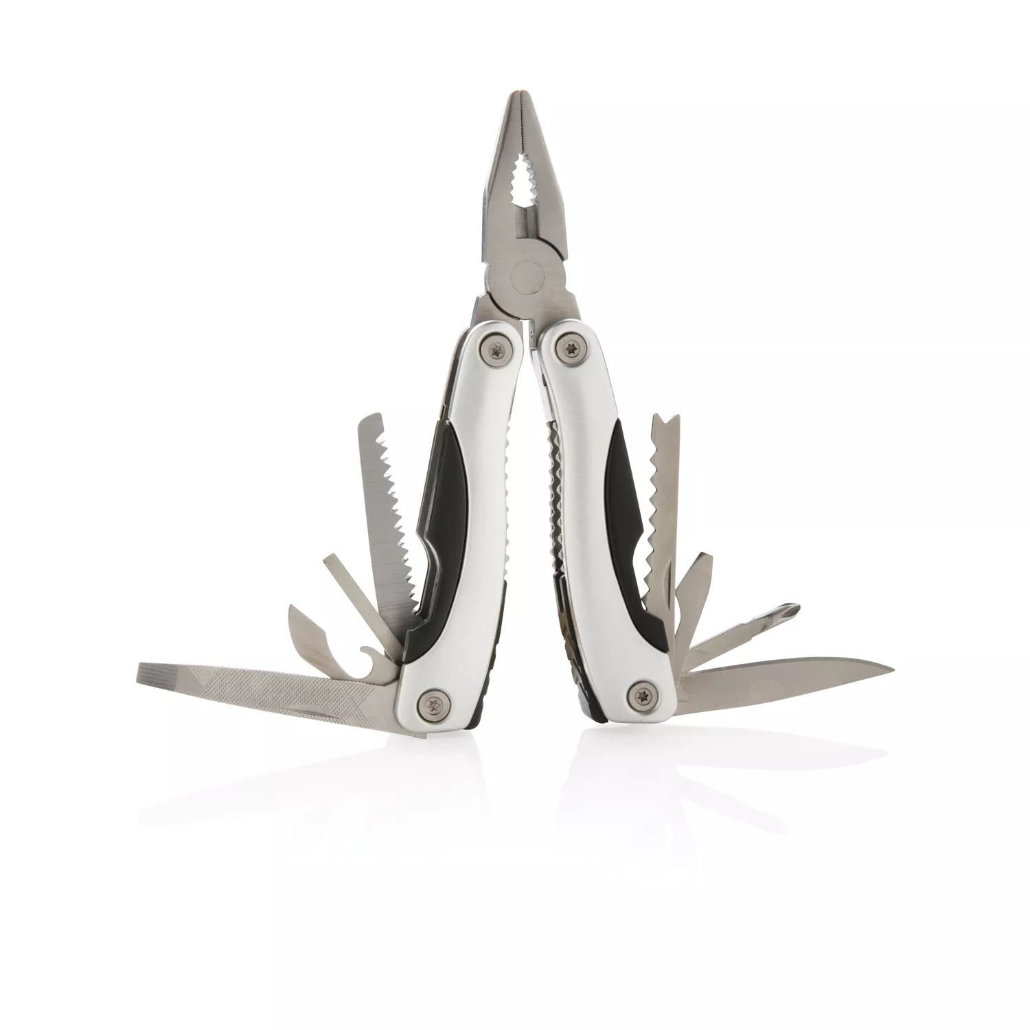 Это алюминиевый многофункциональный инструмент с ручками черного цвета совмещает в себе 14 функций. В комплект входит черный чехол 600D.