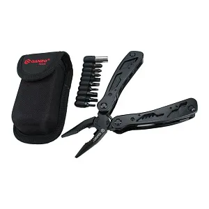 В комплекте мультитул, чехол и набор из 9 съемных бит.