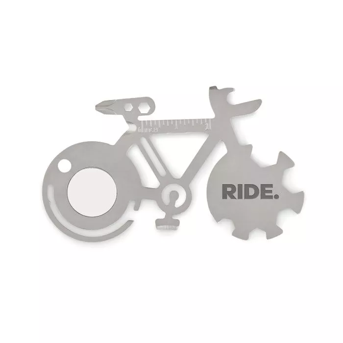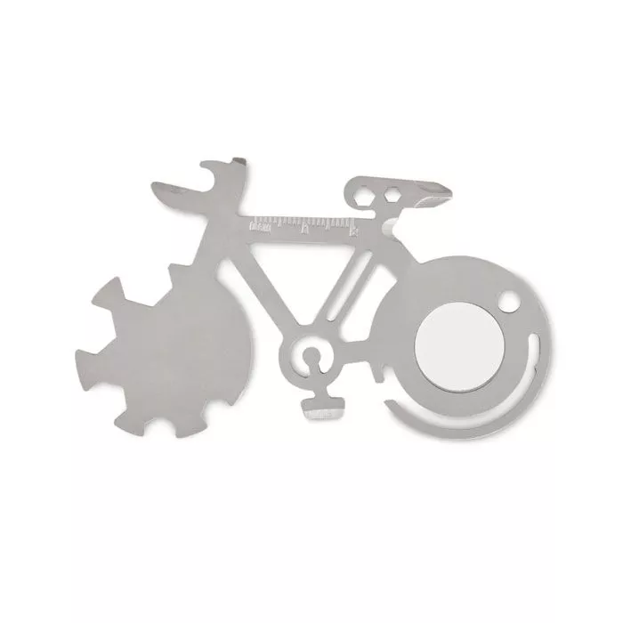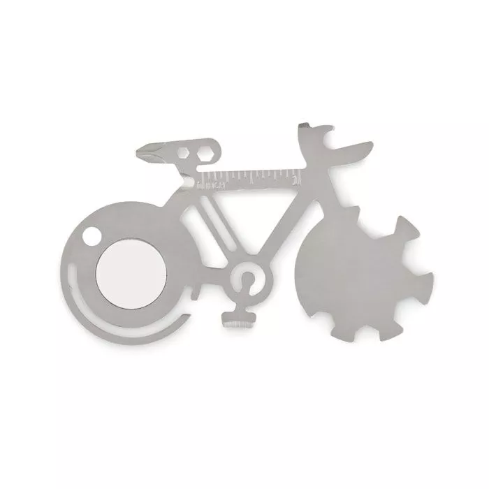 Мультиинструмент 11-в-1 из нержавеющей стали в форме велосипеда. Открывалка для бутылок, нож, линейка или крестовая отвертка.