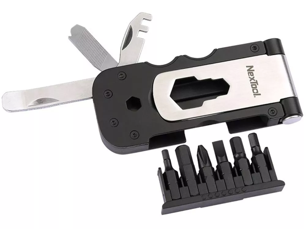 Набор инструментов для ремонта и обслуживания велосипеда состоит из 12 инструментов, которые могут пригодиться во время велосипедной прогулки или кросса. Мультитул сочетает в себе гаечный ключ, спицевый ключ, инструменты для работы с покрышками, напильник, разнообразные отвертки и множество других инструментов для ремонта велосипеда, по набору функций он может заменить целый ящик с обычными инструментами, а благодаря компактности его всегда можно взять с собой, отправляясь как в поездку по знакомому маршруту, так и навстречу неизведанному. Держатель бит мультитула NexTool помещается прямо в корпусе, так что сами биты будут всегда под рукой и никогда не потеряются. Для большего удобства биты крепятся в держателе на магнитах, их можно легко вставить и достать, а магниты удержат их на месте в любом положении. Размер мультитула в закрытом состоянии меньше размера 3,5 - дюймового смартфона. Эргономическая конструкция удобно размещается в ладони. Полный захват создает комфортное ощущение при использовании. Комплектация сменных бит встроенная основа для хранения сменных бит, компактно и надежно размещается внутри, экономя место и надежно удерживая биты. Легкий процесс установки и замены бит не отнимает время. Биты надежно держаться и не выпадают во время работы. В комплекте идет чехол из бархата. Красивый и изысканный, легко носить с собой.