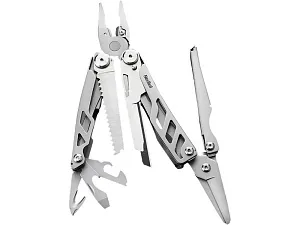 NexTool Flagship Pro Multi Tool (NE20232) - компактный и эргономичный мультитул из нержавеющей стали, который включает в себя 16 инструментов. Многофункциональный инструмент объединяет в себе: пассатижи, плоскогубцы с игольчатым наконечником, нож, пилу, кусачки, кусачки для многожильной проволоки, сменный резак жесткой проволоки, линейку, ножницы, стеклобой, открывалку для бутылок, открывалку для консервных банок, шлицевую отвертку, крестовую отвертку, инструмент для зачистки проводов от изоляции и крюкорез. Длина инструмента в сложенном виде составляет всего 11 сантиметров.