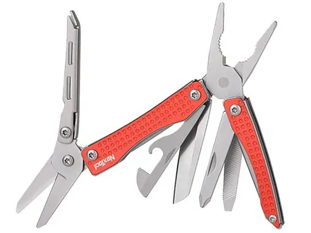 NexTool отлично подойдет для любого похода. С его помощью можно открывать бутылки или металлические банки, например, консервы. Крестообразная отвертка позволит вам затянуть ослабленные винты в мелкой бытовой технике или раскладушке, а маленькие ножницы пригодятся при ремонте одежды или разрезании бинтов. Вы можете всегда носить мультитул с собой - кольцо позволит вам носить его вместе с ключами или прикрепить к рюкзаку или ремню, чтобы он всегда был под рукой, когда вам это действительно нужно. В комплекте: плоскогубцы, щипцы, кусачка для мягкой проволоки, напильник, отвертка с плоской головкой, звездообразная отвертка, консервный нож, нож, открывалка для бутылок, ножницы, кольцо для подвешивания.