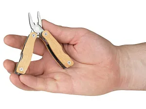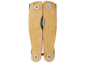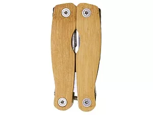 Компактный мультитул на каждый день с корпусом из бамбука. Поставляется в коробочке с чехлом. - плоскогубцы - открывалка для бутылок - крестовая отвертка - нож универсальный - открывалка для банок - плоская отвертка 3 шт. - пила по дереву - напильники по дереву и металлу Гравировка (CO2 лазер) (Без чернения) на данный товар осуществляется бесплатно. Оплачивается только настройка оборудования в размере 1100 рублей на весь тираж.