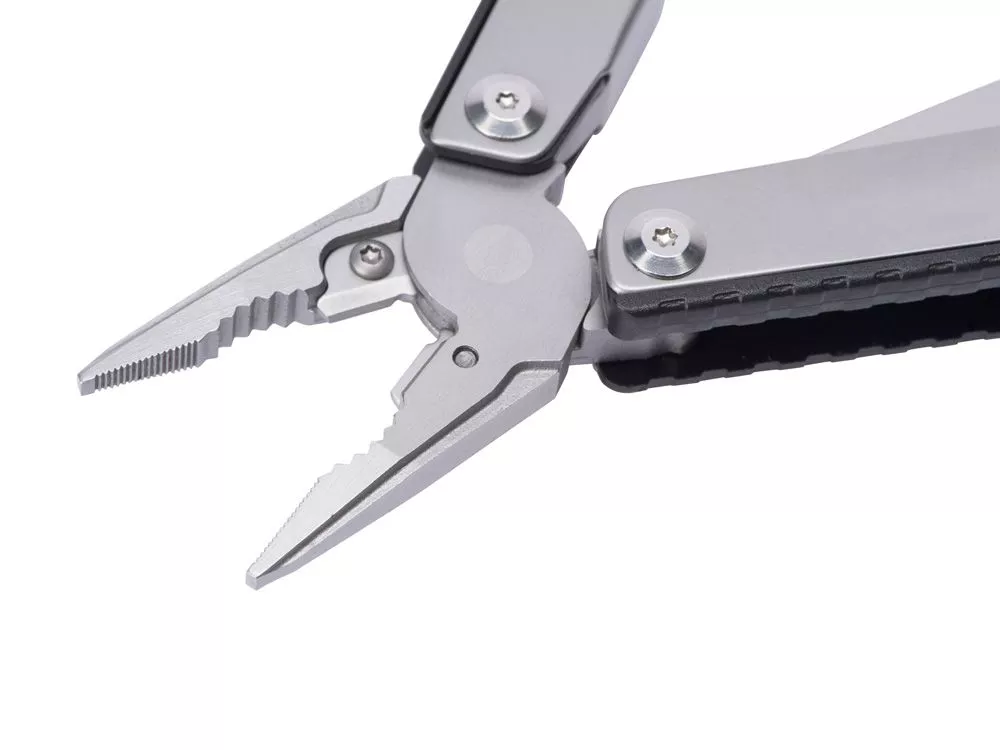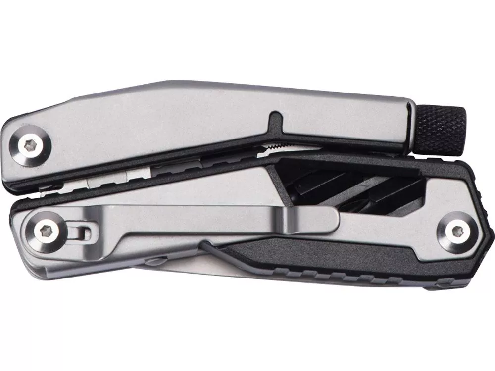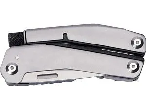 Складной нож Scopus от roq выполнен в ассиметричном необычном дизайне, в его составе — среднего размера нож, пассатижи, плоская и крестовая отвертки (биты), шестигранный ключ 5 мм. Брендированный чехол в комплекте. • легко открывается и закрывается • фиксатор на упоре • клипса для ношения на поясе • компактный • высококачественная сталь 420 марки Гравировка (оптоволоконный лазер) (Без чернения) на данный товар осуществляется бесплатно. Оплачивается только настройка оборудования в размере 1000 рублей на весь тираж.
