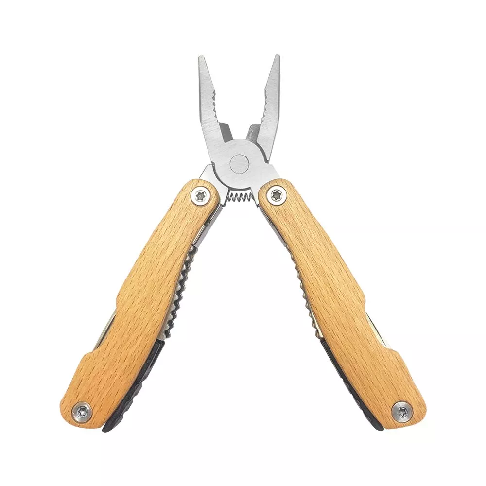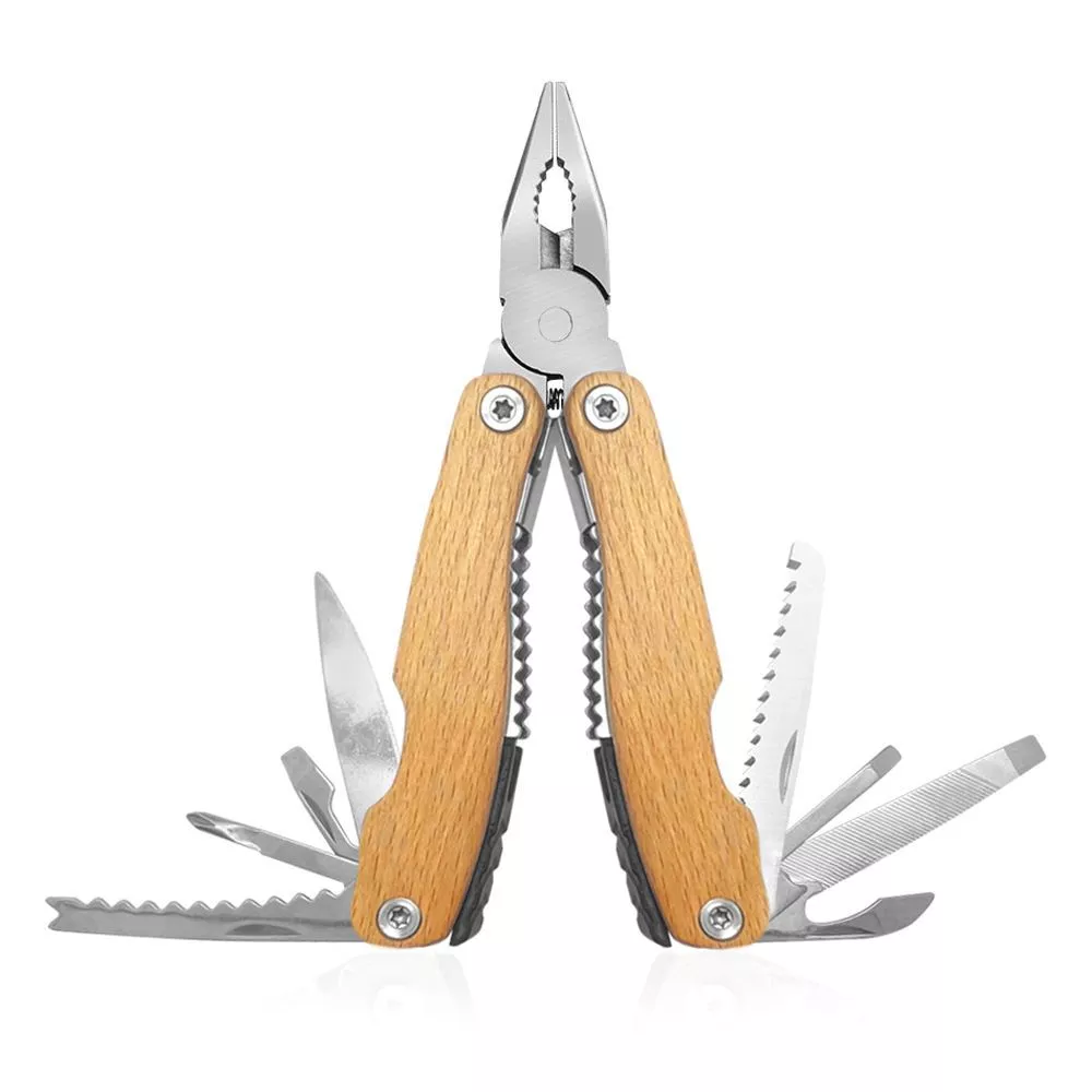 Мультитул Ренджер 13 в 1 изготовленный из прочной нержавеющей сталиа. Деревянная рукоять предотвратит скольжение и придаёт привлекательный вид мультитулу.