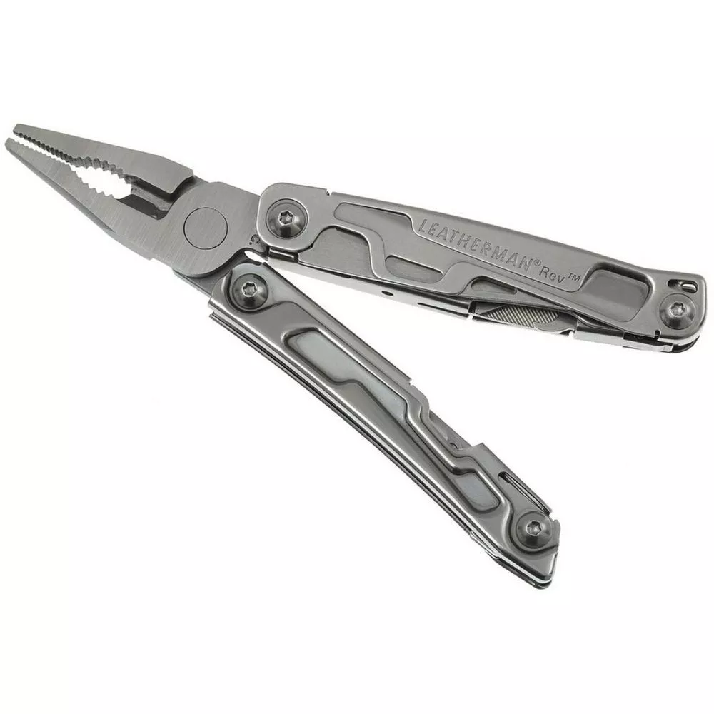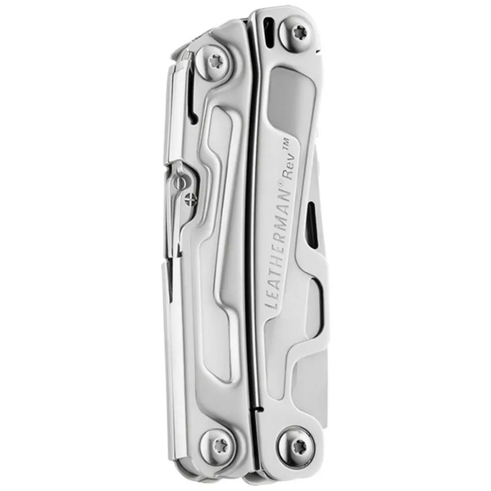 Мультитул Rev считается бюджетной моделью с 14 инструментами в арсенале. Конструкция и рукояти отлиты из высококачественной нержавеющей стали, что обеспечивает долгий срок эксплуатации. Набор вместил прямой клинок из стали 420 HC, усиленные кусачки, которые разрезают стальной трос, набор отверток, универсальные пассатижи с тонкими острогубцами и крюк для вскрытия упаковок.