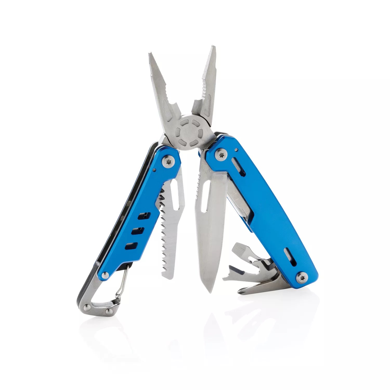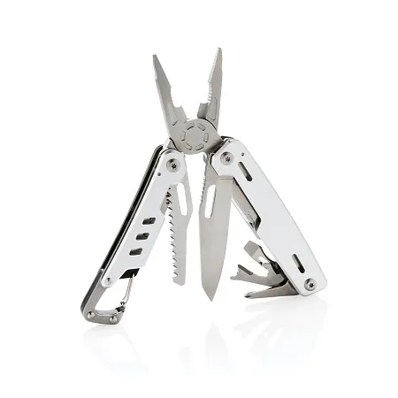 Надежный и долговечный мультитул с 11 функциями, корпус которого выполнен из алюминия, а инструменты – из нержавеющей стали. В мультитуле предусмотрены: узкогубцы, плоскогубцы, кусачки, нож, крестообразная отвертка, плоская отвертка, пилка, консервный нож, штопор, клещи для удаления изоляции, карабин. Поставляется в подарочной упаковке.