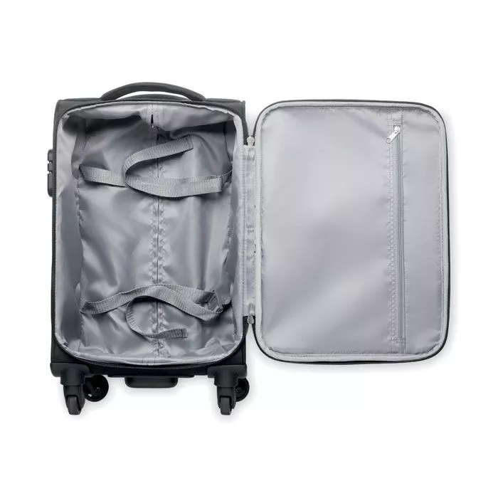 Мягкая боковая тележка 600D RPET Polyester. Включает внешнее отделение для ноутбука на молнии. Передний карман на молнии. Комбинированный замок. Нижнее отделение с лентами. Полиэстер 600D RPET. Двойной трубчатый каркас. Подкладка 210D RPET и детали из PU.
