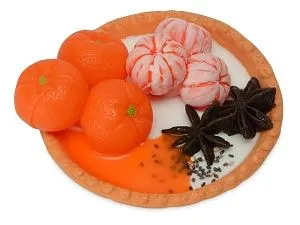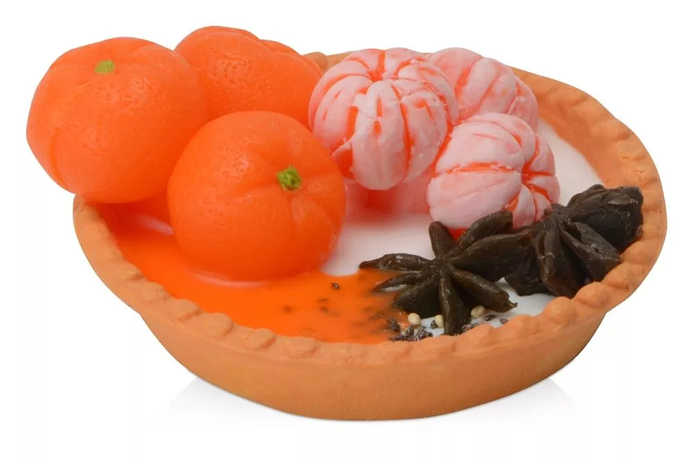 Уникальное мыло ручной работы в форме большой тарталетки с мандаринами. Основные ноты аромата на основе мандаринового-цитрусового микса. Внимание, мыло нельзя употреблять в пищу, несмотря на невероятно аппетитный вид. Поставляется в прозрачном пакете с бечевкой, который можно забрендировать стикером с дизайном заказчика. Цифровая печать (наклейка на белой пленке) на данный товар осуществляется бесплатно. Оплачивается только настройка оборудования в размере 950 рублей на весь тираж.