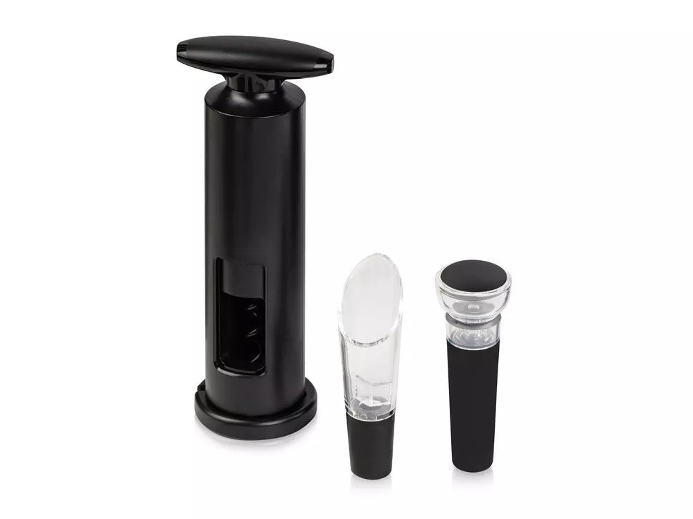 Набор Bergamo бренда Master of Wine состоит из ручного штопора, ножа для фольги, вакуумной пробки и аэратора. С его помощью можно откупорить напиток (нож, штопор), разлить и подготовить его к распитию, насытив кислородом (аэратор), и даже сохранить остаток в бутылке до следующего раза (пробка). Идеальный вариант на роль бюджетного подарка деловому партнеру, который можно приложить к вину. Подаренный напиток закончится, а брендированный набор останется, напоминая о дарителе. Острая часть штопора спрятана от пользователя в корпусе, что не только защищает от повреждений пальцы, но и обеспечивает спирали долгий срок службы. Нож для фольги может играть роль подставки под штопор — слегка сожмите его края и поместите в нижний паз. Для откачивания воздуха из бутылки несколько раз покачайте пробку. - оптимальное соотношение цены и качества - в наборе — принадлежности для всех этапов употребления вина - подставка под штопор - поставляется в фирменной упаковке бренда - дизайн продолжает общий стиль Master of Wine, можно сочетать с другими товарами бренда для создания сета Тампопечать (1 цвет (цветные изделия)) на данный товар осуществляется бесплатно. Оплачивается только настройка оборудования в размере 3600 рублей на весь тираж.