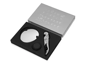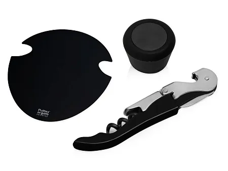 Универсальный набор аксессуаров для вина от Pulltex имеет все важное и необходимое для потребления и сохранения вашего напитка, а именно: классический нож-сомелье, силиконовую пробку и каплеуловитель, с помощью которого очень удобно разливать вино по бокалам. Набор поставляется в подарочной коробке с ложементом. Гравировка (Без чернения) на данный товар осуществляется бесплатно. Оплачивается только настройка оборудования в размере 900 рублей на весь тираж.