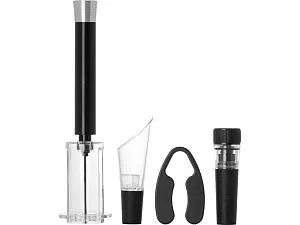 В винном наборе Pinot Grigio собрано все, что необходимо для откупоривания, подачи и длительного хранения вина. Аксессуары поставляются в эффектном красном тубусе и брендированном шубере. В состав комплекта входят: · пневматический штопор, который позволяет быстро откупорить бутылку и извлечь пробку без каких-либо повреждений; · вакуумная пробка, продлевающая срок хранения вина; · аэратор для переливания вина из бутылки в бокал и насыщения кислородом; · нож для срезания фольги. Набор аксессуаров станет функциональным и стильным подарком, который понравится ценителям благородных напитков. Внимание: чтобы смазка штопора не высохла, профилактически используйте его каждые две-три недели — это позволит вам сохранить механизм в надлежащем состоянии. Для плавной работы механизма рекомендуется заливать 1-2 капли растительного масла во внутреннюю трубку каждые 3-6 месяцев. Гравировка (оптоволоконный лазер) (Без чернения) на данный товар осуществляется бесплатно. Оплачивается только настройка оборудования в размере 950 рублей на весь тираж.
