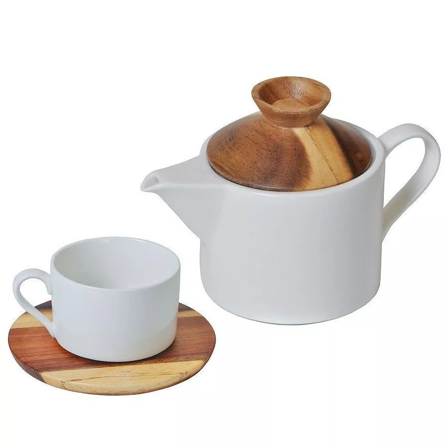 Если у Джорджа Мартина «Песнь льда и пламени», то набор ANDREW – настоящая песнь дерева и фарфора! В наборе два предмета – чайник на 600 мл и чайная пара nbsp;на 200 мл. nbsp;Крышечка чайника и подставка для чашки выполнены из акации, которая отличается особой прочностью и плотностью и поэтому не разбухнет от воды и влаги.Белый фарфор идеально сочетается с деревянными элементами. Только посмотрите на это великолепное стильное сочетание нежного молочного фарфора с пестрой текстурой дерева!Рисунок на срезе не повторяется, что делает каждый набор неповторимым и индивидуальным.Классное решение для маленьких кофеен, авторских ресторанов, летних веранд и коворкингов. nbsp;Поставляется без подарочной упаковки.