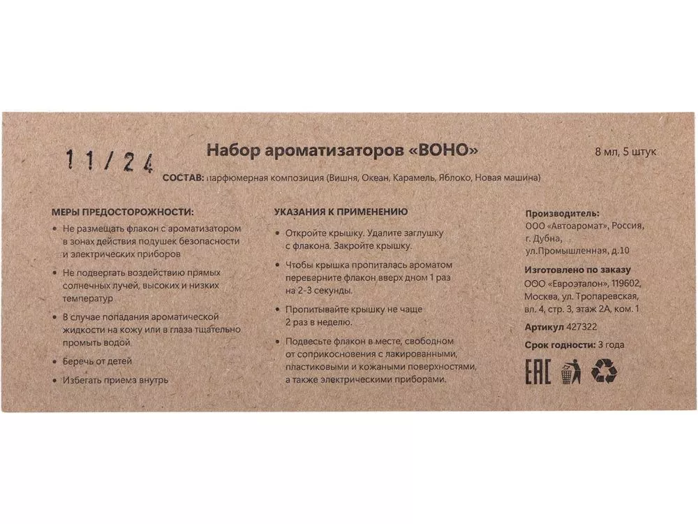 Набор подвесных ароматизаторов воздуха Boho 5 будет отличным подарком для автовладельцев и не только. Диффузор также можно применить и для локальной ароматизации дома, офиса, ванной и любой другой комнаты. В наборе 5 ароматов: Вишня, Океан, Карамель, Яблоко, Новая машина. Каждый ароматизатор имеет привлекательный внешний вид и удобную форму. Бамбуковая крышка отлично впитывает и долго держит аромат. Для усиления эффекта можно перевернуть флакон на 1-2 секунды. Один флакон прослужит в среднем 2 месяца. Тампопечать (1 цвет (цветные изделия)) на данный товар осуществляется бесплатно. Оплачивается только настройка оборудования в размере 8200 рублей на весь тираж.