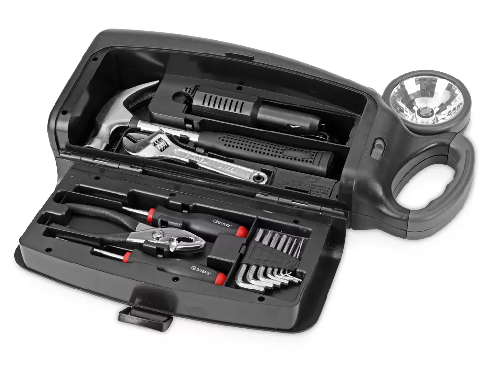 Набор позволит автовладельцам забыть о неприятностях в дороге. Содержит в себе самые необходимые инструменты и даже фонарик. Отвертки, ключи, плоскогубцы и многое другое в компактной упаковке просто обязаны быть в Вашем автомобиле. Прекрасный подарок для каждого водителя.