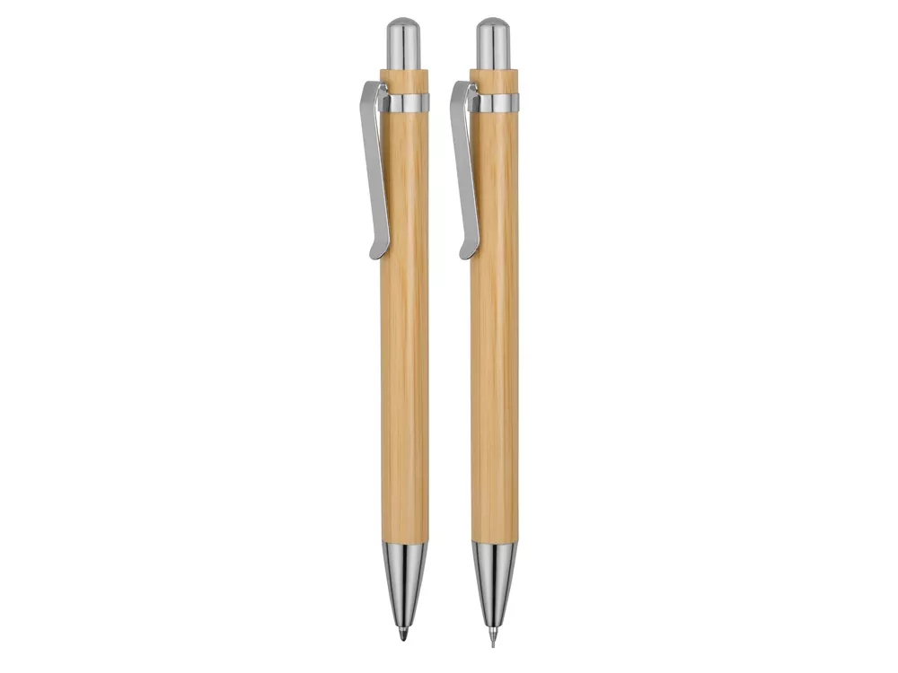 Набор Bamboo с шариковой ручкой и механическим карандашом. Лаконичный дизайн и уникальный рисунок натурального бамбука. Ваш подарок понравится ценителям натуральных природных материалов.