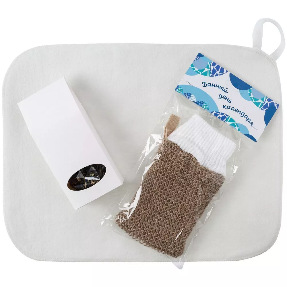 Коврик и мочалка, как системообразующие элементы банного дня, естественно, включены в комплект.В набор входят: