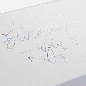 Секрет прост: это особенное перламутровое напыление бокалов и стеклянной елочки-светильника, а еще серебристое голографическое тиснение на самой упаковке и ежедневнике с главным — и всегда актуальным — пожеланием. В такой компании блестящие идеи, без сомнения, будут посещать намного чаще, чем обычно, а весь год будет окрашен в яркие тона, искрящиеся радостью!