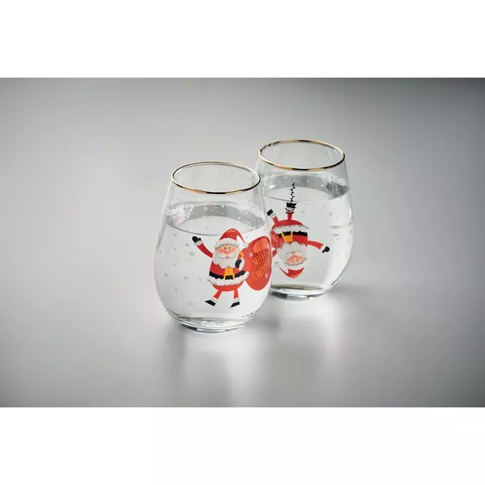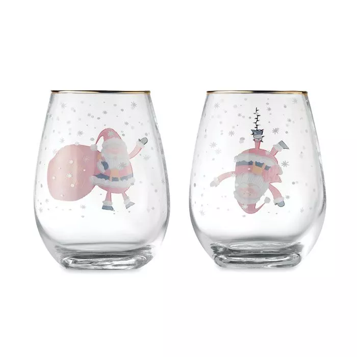 Набор из 2 рождественских бокалов с золотым ободком. Поставляется в подарочной коробке. Объем: 330 мл.